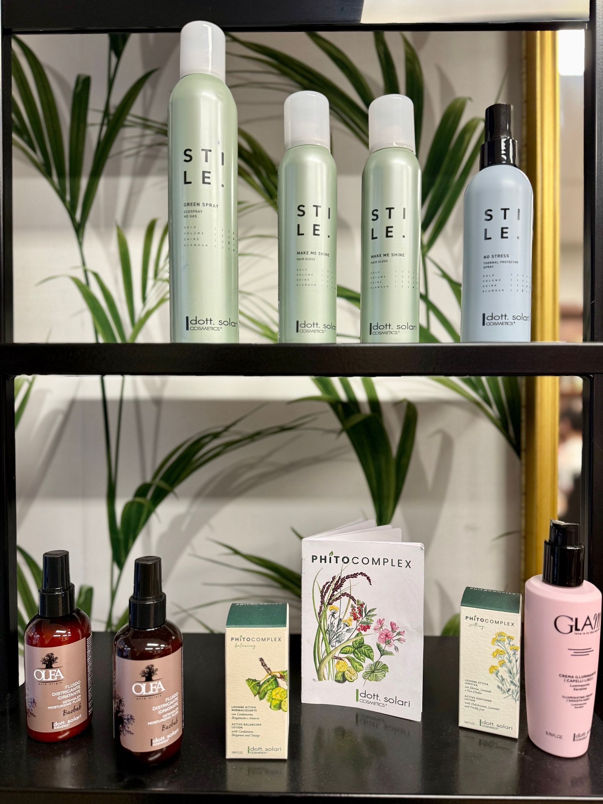 Nel nostro salone utilizziamo principalmente prodotti del Dottor Solari, selezionati per garantire sicurezza, efficacia e rispetto del capello. I colori OLEA COLOR senza ammoniaca offrono una copertura uniforme grazie all’olio di baobab e monoi, risultando delicati anche per soggetti allergici o in gravidanza.